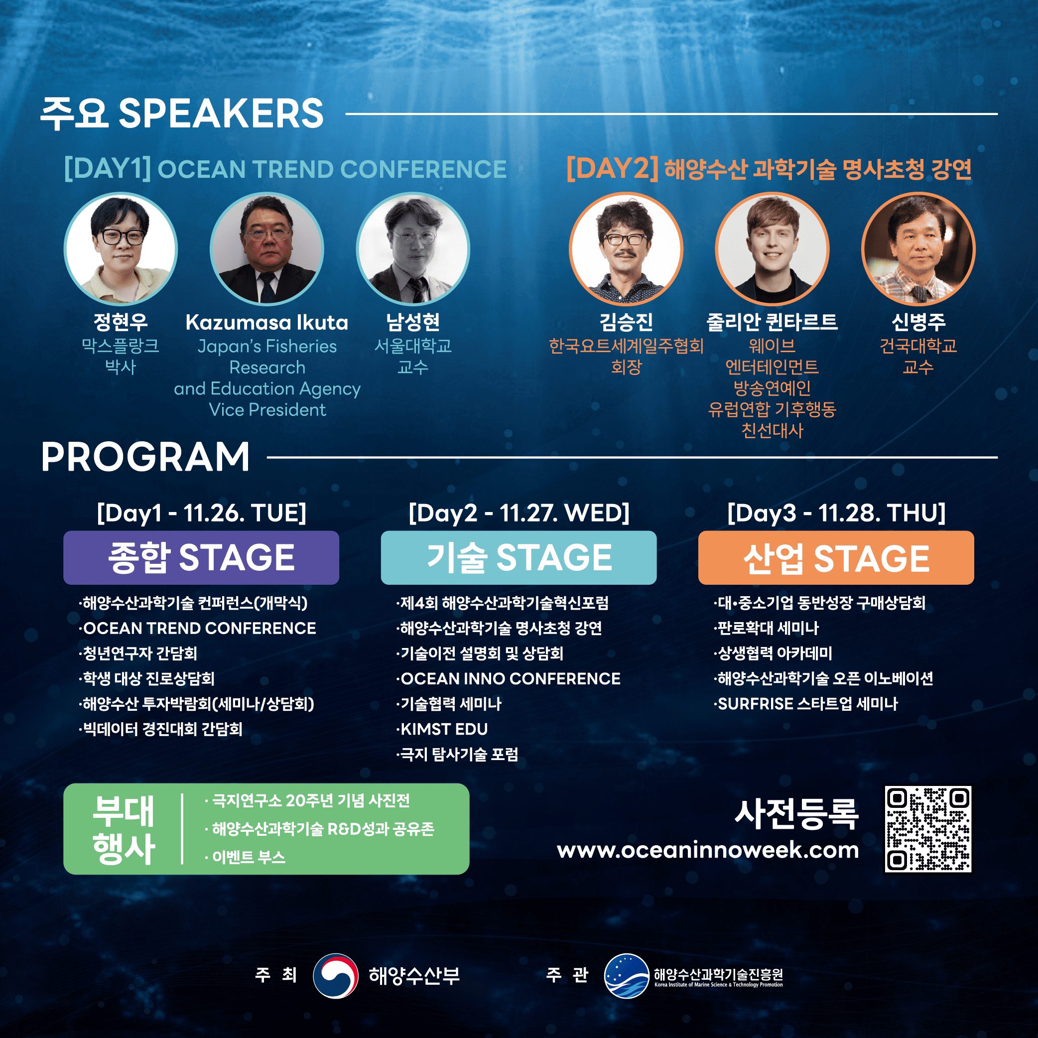 사전등록은 2024 해양수산과학기술주간 홈페이지 (https://www.oceaninnoweek.com) 에서 등록하실 수 있으니,