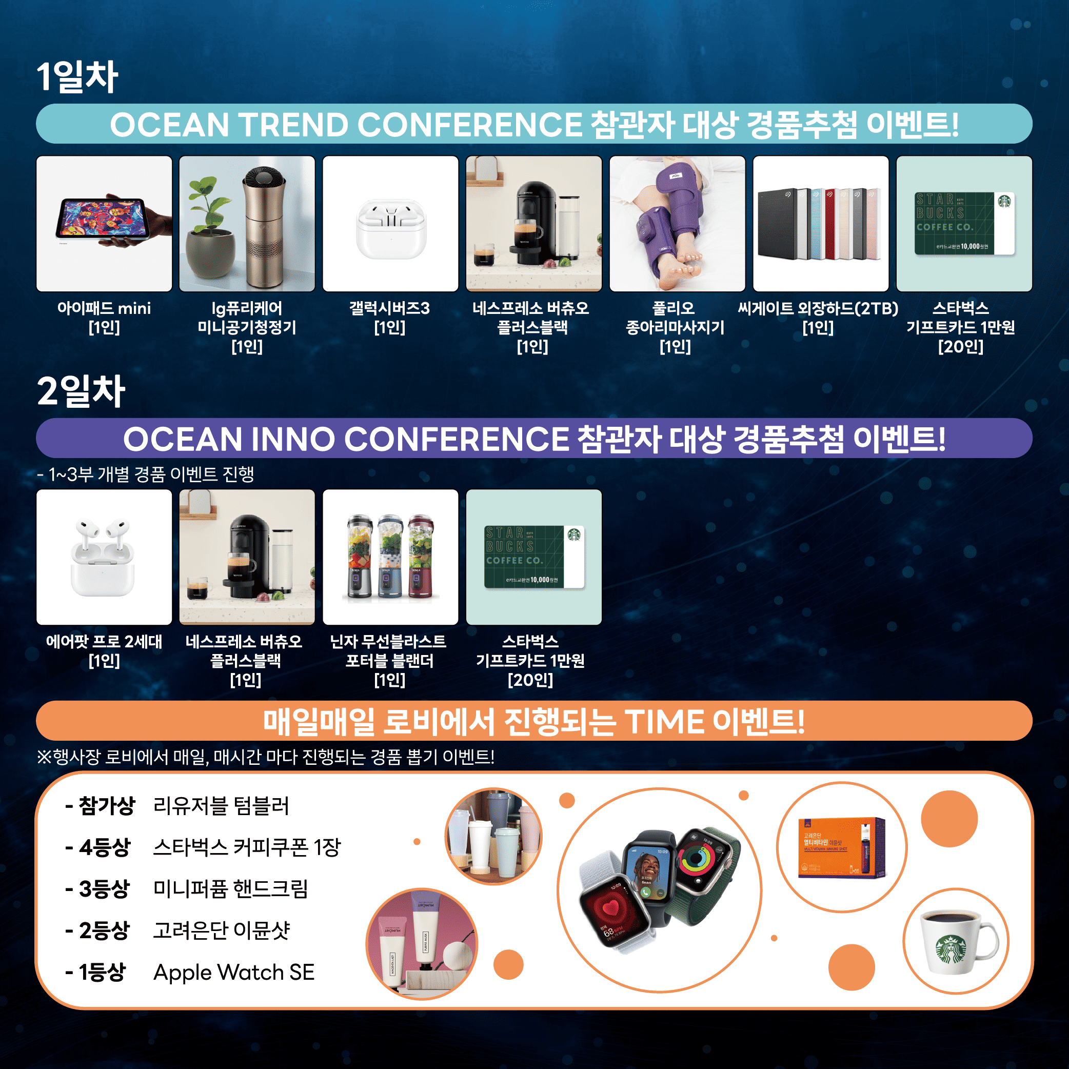 행사장 로비에서는 시간별 TIME이벤트를 통해 애플워치 등의 경품을 매일매일 제공한다고 합니다!✨