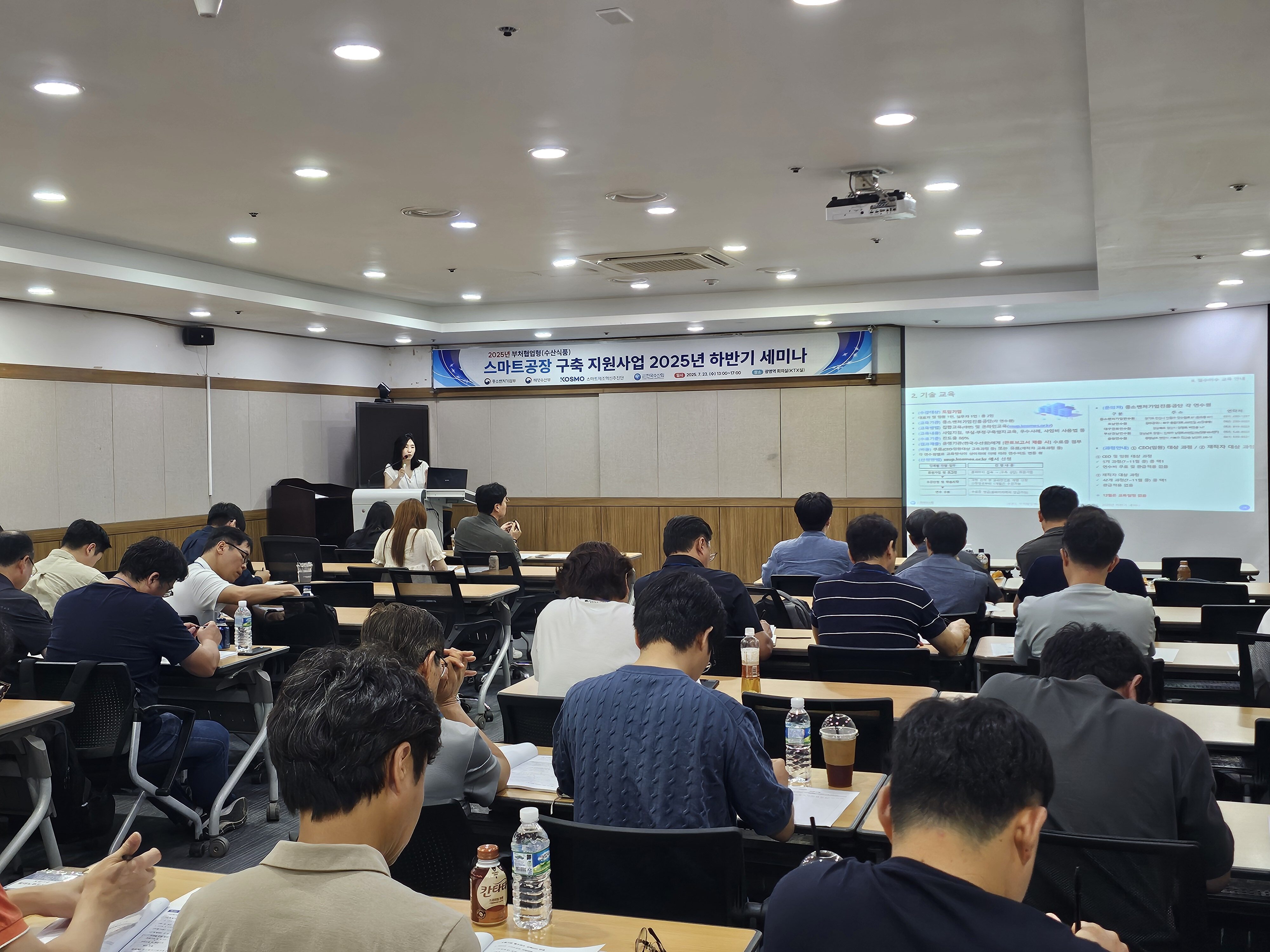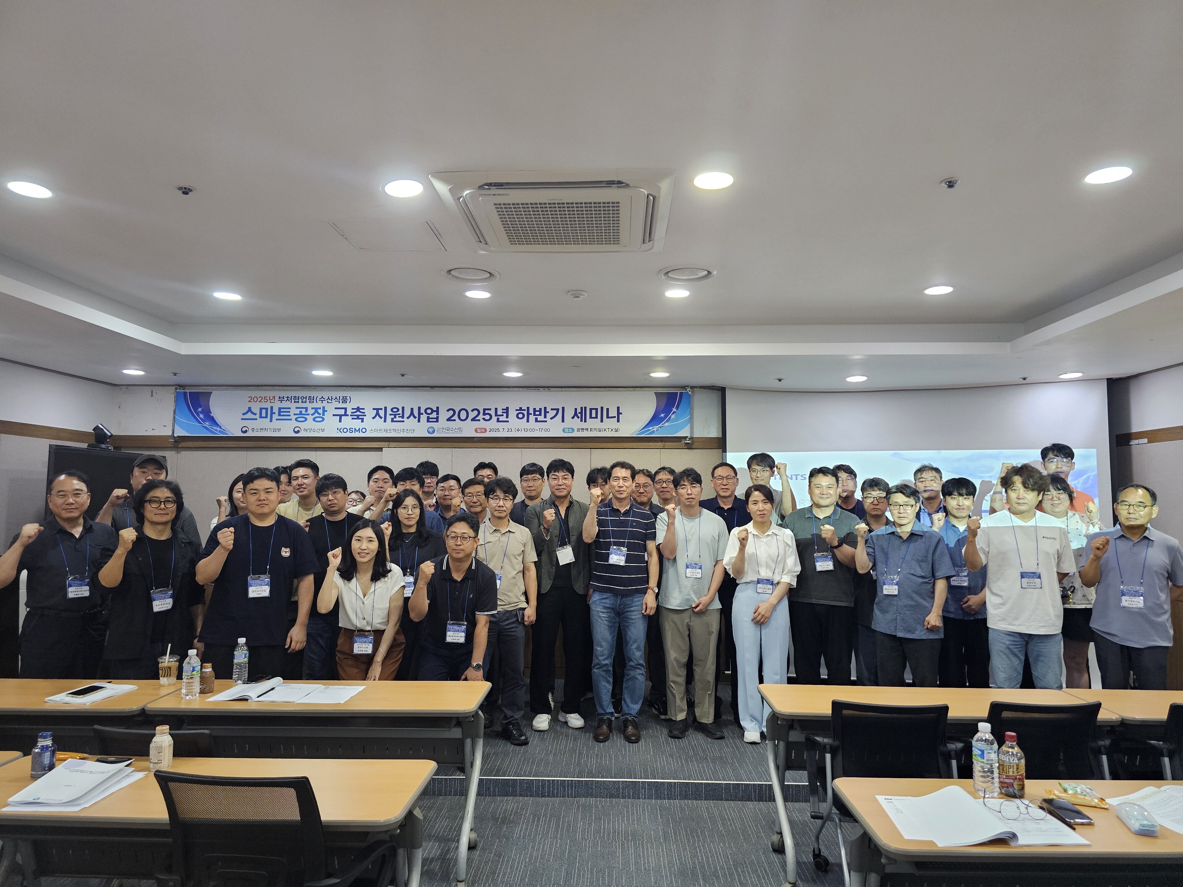 한국수산회(회장 정영훈)는「2025년 부처협업형(수산식품) 스마트공장 구축 지원사업」의 원활한 추진을 위해, 23일(수) 오후 1시 광명역 회의실(KTX실)에서 도입기업 및 공급기업을 대상으로 하반기 세미나를 개최했다.